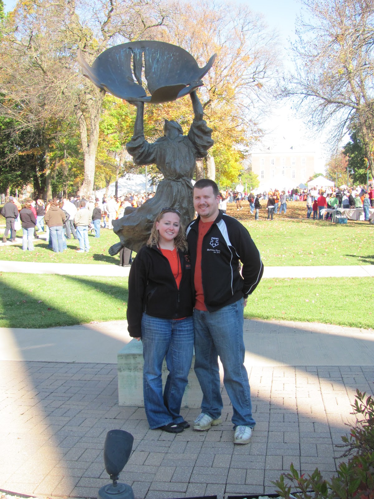 On Saturday, we spent the day walking around campus and meeting up with old friends! You couldn't even walk 10 steps without being stopped by someone you knew! It's an awesome feeling. Wartburg, I believe, will always feel like home to me. It's where AJ and I both meet some incredible people who we consider to be life-long friends. It's where we meet. It's where we got married. It's the place that's helped define us. It will also be home to us. I think that's another reason why I love to go back every year to Homecoming. Homecoming will always fall right around our anniversary, and since campus is where we got married, it's fun to be able to go back every year and not only celebrate homecoming and see all of our friends, but to also celebrate us and our marriage.